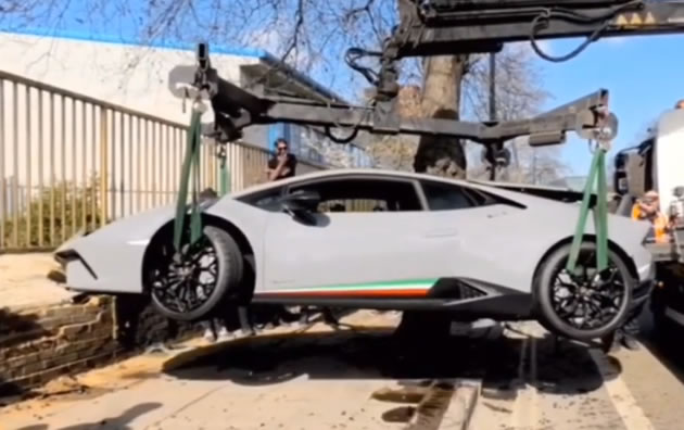 The Lamborghini being lifted away. Picture: YouTube