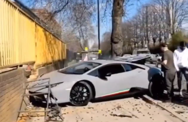 A Lamborghini Huracan Performante was written off after it was driven into a tree then a wall in North Acton this Sunday (24 March).