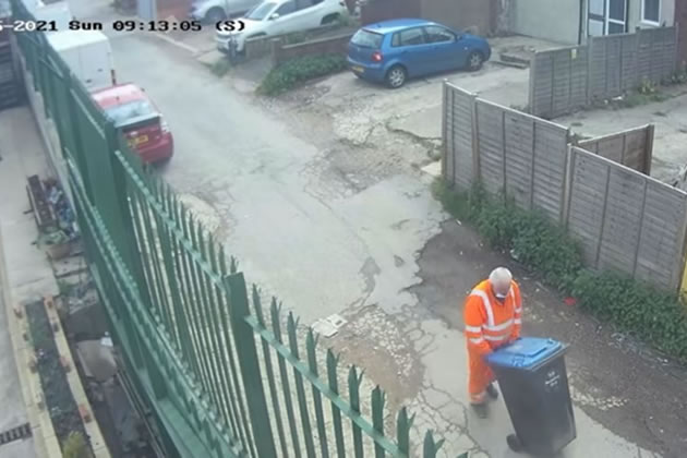 Paizan moving a wheelie bin shortly after the murder had taken place