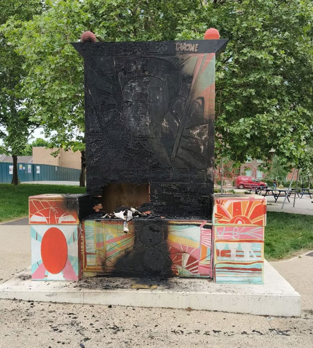 The People’s Throne, a sculpture on Bollo Bridge Road by local artist, 42-year-old Adebayo Bolaji, was badly damaged when it was set on fire on Wednesday 14 May.