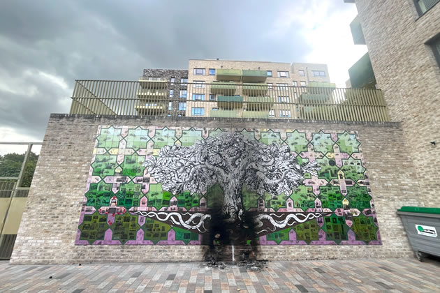 Then over the Bank Holiday weekend there was another attack on a piece of public art on the estate, this time the ‘South Acton Tree of Life’ was hit. This is a mural created by internationally renowned artist Carrie Reichardt working alongside community groups on Palmerston Road near South Acton train station.