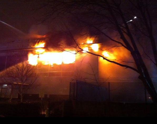 Station Manager Bill Dunn, who is at the scene, said: “Crews arrived to find a well developed fire in a large industrial building. They then launched an aggressive and sustained attack on the fire to stop spread to adjacent buildings. Throughout the night, crews have been working very hard to contain the fire and prevent it from spreading using ground monitors and four aerial appliances on all sides of the building.