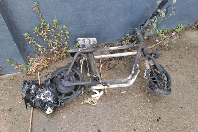 The e-scooter after the fire. Picture: London Fire Brigade