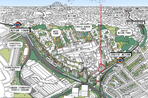 The scheme which is in the South Acton industrial estate backing on to Weston Road in Chiswick, includes three towers up to 18 storeys high.