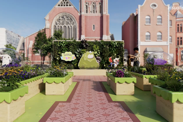 The proposal sets out a series of decorative elements themed around Pokémon, one of the world’s most recognisable entertainment franchises. The installation would include a welcome sign incorporating Pokémon branding, attached to a living wall.