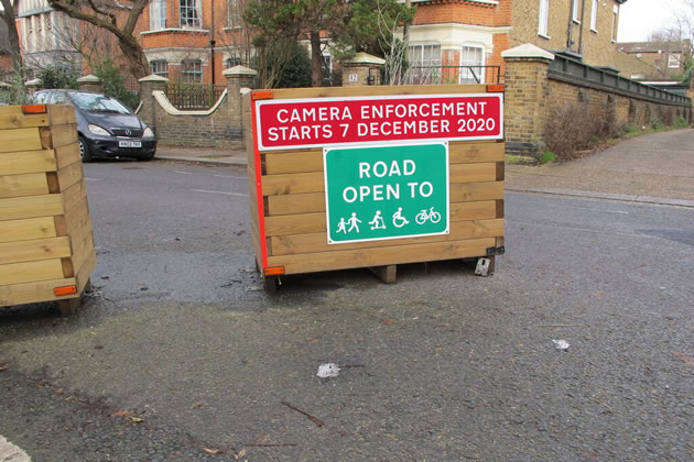 A road barrier at the entrance to the Acton Central LTN. Picture: David Hawgood