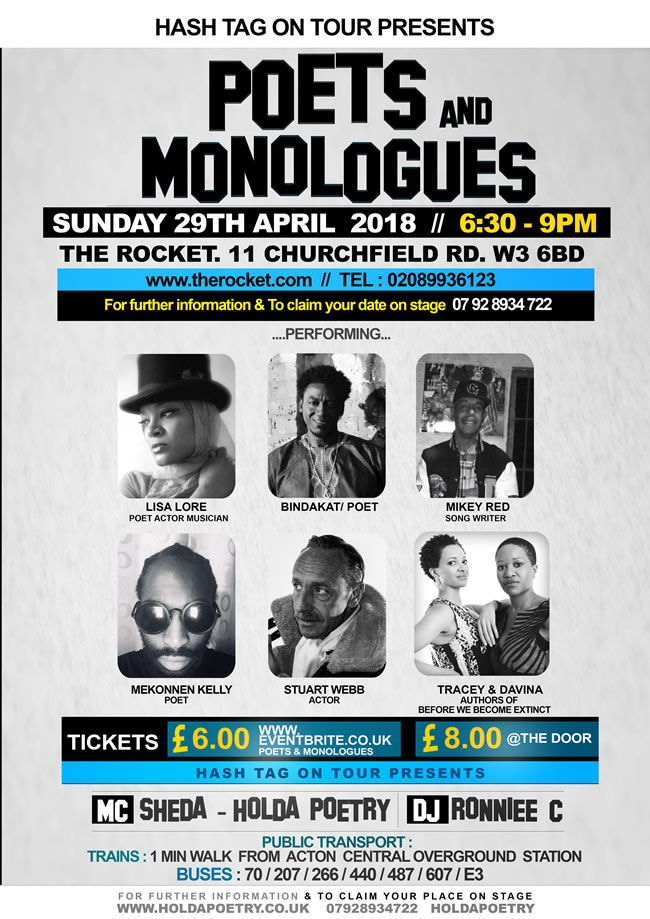 Live at The Rocket, Churchfield Road, Acton W3 on Sunday 29th April at 6.30 pm.