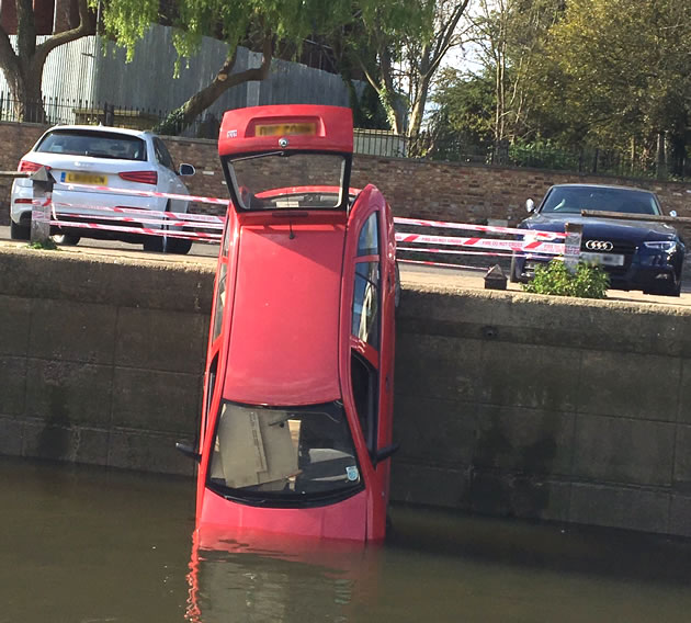 A car has been driven head first into the river of Church Street Isleworth this Saturday afternoon (15 April).