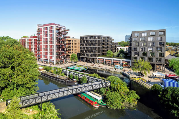 The design aims to maximise views along the River Brent and Grand Union Canal or further out towards London with cantilevered balconies to the east and south, extending the living spaces over the canal and adjacent working dock. The balcony design takes inspiration from the adjacent bridge designed by Isambard Kingdom Brunel over the River Brent.