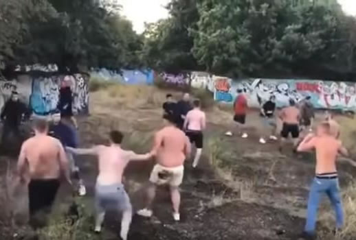 Videos of the fight appeared on social media showing a number of shirtless men in a muddy field.