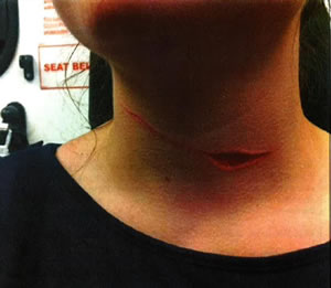 On Tuesday 7 August, shortly before midnight, in Hanworth Road, near the junction with St Stephens Road, a 19-year-old woman was approached from behind. She was grabbed by the attacker and cut with a bladed item across her neck.