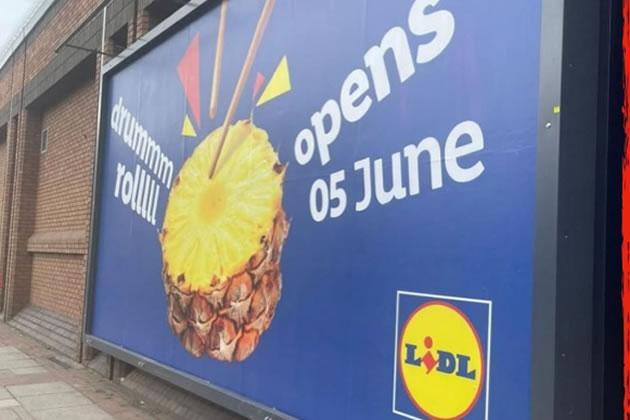 The poster revealing the opening date for Brentford's Lidl. Picture: Brentford TV