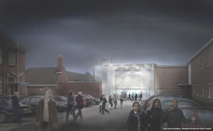 A mesh-draped structure to house a new 170 seat theatre, sixth form centre and ICT suite has been granted planning permission for Brentford School for Girls. Designed by Paul Vick Architects, it will be built this year.