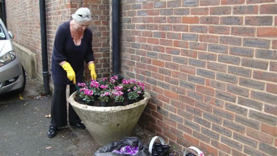The Isleworth Society decided on community action when last week they filled the two neglected planters outside Isleworth Library with winter-flowering plants.