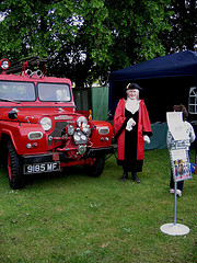 Hounslow Mayor Genevieve Hibbs and a Fire Engine from the Historic Fire Engine Display at Kew Bridge Steam Museum.