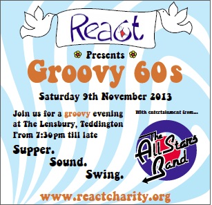 React Charity’s An Evening of the Groovy 60s on Saturday 9th November, 7pm