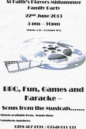 St Faith's Players Midsummer Family Party on 22nd June, 6.30-10pm (not from 5pm as it says above)