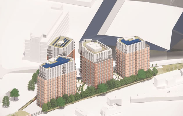 58 of the new flats would be classed as affordable and be situated in Building C2 and a new public play space about the size of one and a half tennis courts would be provided. An increase in the height of two of the blocks would be needed to accommodate the new flats but the maximum height in the scheme would remain at 15 storeys. Buildings A, B, C1 and C2 will have 13, 15, 12 and 12 storeys respectively. 16 new affordable flats would be added to Building C2 and three new open market sale homes would be added 1 in Building B and 2 in Building C1.