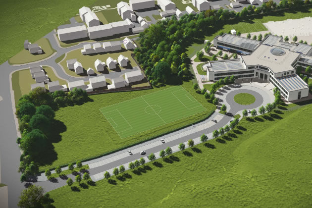 A visualisation of the school's development submitted with the planning application showing the woodland retained