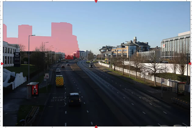 A visualisation of how the buildings would look viewed from the A4. Picture: OWGRA