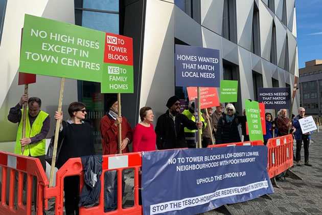 The public inquiry into the Tesco/Homebase twin developments was opened by the Planning Inspector, Mrs Jennifer Vyse, on 15 March after a protest had taken place outside Hounslow House by opponents of the schemes.