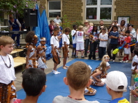 Afriklub Dance Group have been learning their dance routine in school and were very pleased to finally perform it in front of their friends and family, which they did with smiles and concentration.