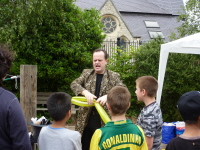 Tim Barnes, Brentford's local magician entertained a tough audience with a mix of card tricks, magic and balloon artistry. Despite a loud but young voice from the audience complaining "that's not real magic, that's just tricks" he succeeded in enthralling the children, many of whom have never seen a magician up close.