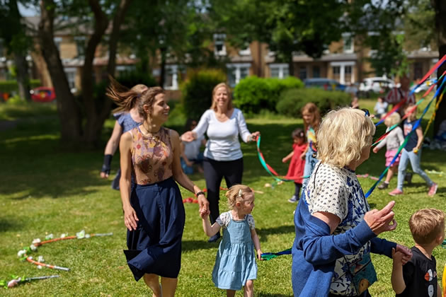 Lara and Ruth go round the Maypole