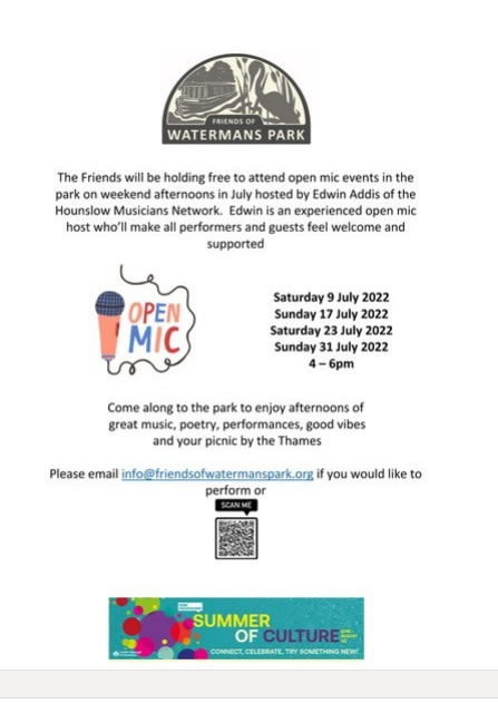 Yet another Zooting© in the evening, this with the Friends of Watermans Park. I have to be careful with my typing, they are definitely NOT the Fiends of Watermans Park. The park is looking great and musical events start on Saturday 9th July – here’s the programme!