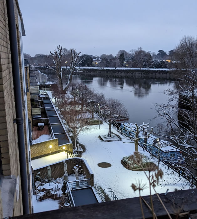 In the morning, a rare sight of snow outside my flat. Lovely.