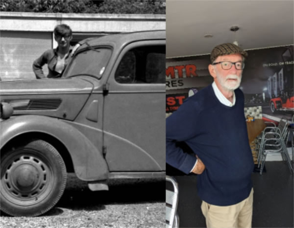 Picture of Alan in c1964 with the Ford Popular we were ‘restoring’ at the time. Picture of him now.