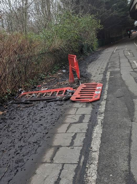 Back to the grumble, there are things we (or a few of us) do notice but they are not brilliant at dealing with this. This gorgeous site is on the cycle lane/footpath on the A4 when it is hidden by trees in Carville Park on one side and the ramps from the M4 on the other. I have been moaning about this for years and just had another moan. I have always been a fan of those plastic ‘barriers’ which fall over in the wind if someone suffering from flatulence walks past. They are not confined to Hounslow Highways or even to the UK. They are conforming to the International Standards Organisation standard for useless and are used around the world.