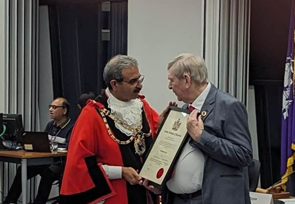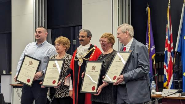 In the evening there was another special meeting of the council, but there was no tension this time. We were appointing 5 former councillors as honorary alderpersons and I was delighted to see my recent ward colleagues, Corinna and Mel being selected. I had the honour of doing the nomination speech for The Melvinator and that was one of my most pleasant duties as a councillor. Mel and I have little in common other than a strong desire to do what we can, and do our best for our local residents. Mel had been doing this for 24 years, despite his long-term poor eyesight and at times other health problems (he’s fit now, which is another pleasure) and is genuinely a legend in Brentford. I have grown to love this man. I’m proud to know him and extra proud to be part of celebrating his career.