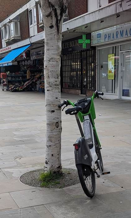I also spent some time strolling around Brentford. As I’m a bit of a biker having a (I hope) short spell of Cold Turkey I notice them. I looked longingly at a Lime bike on the High Street. I was fighting the craving and I looked for it on my Lime App, but it wasn’t there. Aha, I reported it to the police – Hounslow Highways are the first step and let’s see if this dodgy one disappears.