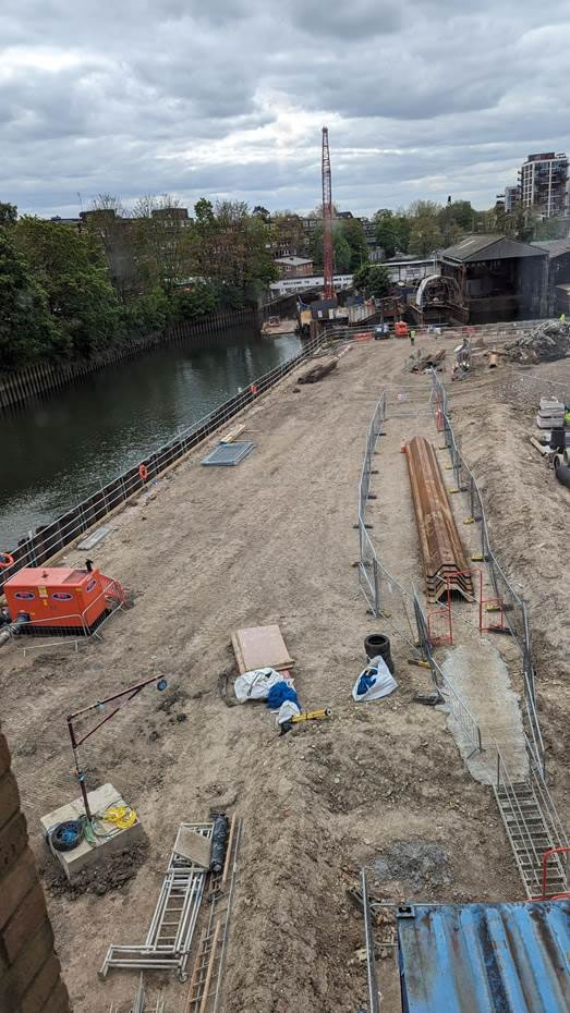 Along the same lines, I thought it was appropriate to update the now inaccessible pathway that used to link Ferry Quays to what used to be Morrisons. A few years ago I secured some money from S106 funds to improve this and back in that toasting summer of 2022 I spent many hours taking lemonade bottles full of water to the young trees there. I found out at the time Heidelberg redevelopment that it was agreed that those trees, which turned out to be on Heidelberg property, were for the chop. A woman supervising some work there told me she would try to get them relocated but it never seemed likely to be practicable. As it turns out, not only have they gone for a burton, but the mature one of the corner of the river has gone too – need to check if that was permitted, but a bit late. Need to check and get an update as to when we’ll get our back door entry back – I think I remember September being discussed. I can’t see it clearly but I think the bigger tree on the corner to the right, just out of this picture, is still there. Phew. That looks like a hangman’s scaffold down at the bottom but I suspect that is misleading.