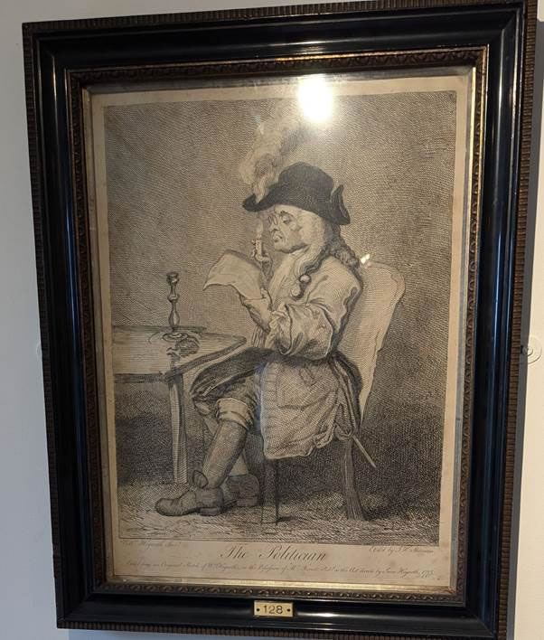 I took a quick look around Hogarth’s house, where the consultation was hosted. A couple of pictures caught my eye. This one represents a ”Modern Conversation” and is a comment on new taxes on booze and fags.
