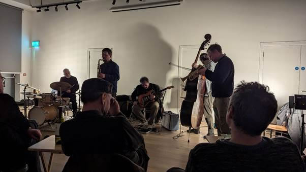 There were 5 blokes there of a certain age (they may have been middle aged and middle class but I didn’t ask) with fairly normal instruments playing them in the normal manner. I love it when people are clearly fascinated and committed, and these guys were. Obsessed, perhaps.