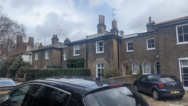 On Saturday I decided to follow a bit of my Ian Nairn obsession. Not in a Morris Minor Convertible but on my trusty bike and later on my dodgy feet. I decided to go to Hammersmith where once Honeywell had a training centre, and follow my internal compass North East from there on foot. I didn't get very far but found some rather splendid Victorian villas as well as dozens of Teslas, now more commonly known as Swastikars in deference to Elon Musk. Sales are plummeting in Europe (UK lagging I'm afraid) by around 50%. We probably don't need tariffs. None of these excrescences in the picture.