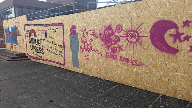On Monday I took a gentle stroll along the river to Kew Bridge. )n the path on the river side of the old Watermans there is a new (I suppose) graffito. I suppose it may be related to the new artists who are using Max Factor (as was) and I found it very pleasing.