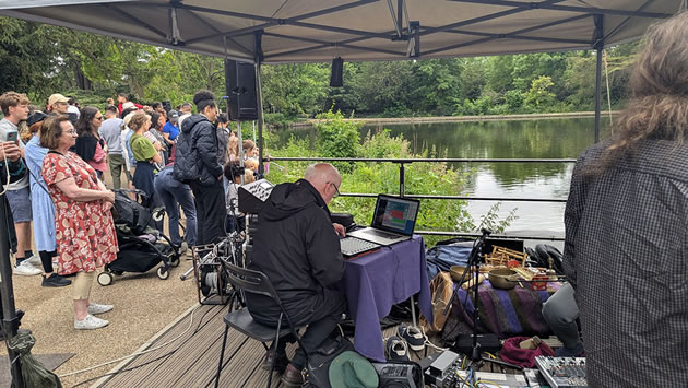 On Saturday I went up to Boston Manor Park, where the Nature Festival was running. There were hundreds of people there and I went back late in the day to see the bubble. This young chap was doing the music in a rather Junction2 way.