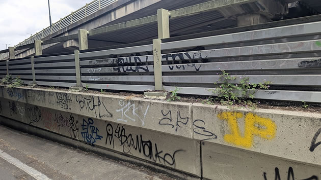After this I visited the Blend Cafe near the station. The man who runs it is exploring a place in the council block on the High Street. He was originally told no so when at least one other tenant dropped out I suggested he be included. I believe he has been accepted now but of course this is all a state secret. Perhaps someone should leak it to Donald Trump so he can keep the papers in his toilet. Whilst I was there someone asked me about the classic car cavalcade. I had forgotten it but said I knew it was supposed at Kew Bridge at 12 and do laps around the GWR. I decided to try and find it and cycled along the A4 (a slightly dangerous escapade) and remembered a conversation I had had with a lady from Connect Plus, the contractors who are 'fixing' the M4 flyover. She observed I had accused them of never removing graffiti and I agreed to send her some pictures. Just one for your delectation - though to be fair they have for once in their life painted over some of them.