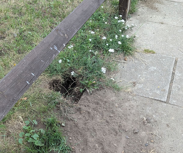 Today I went on a council housing inspection at Sidney Gardens and Holly House which straddle the station. Sidney is mainly OK though we spotted a couple of burrows in the grass verges.