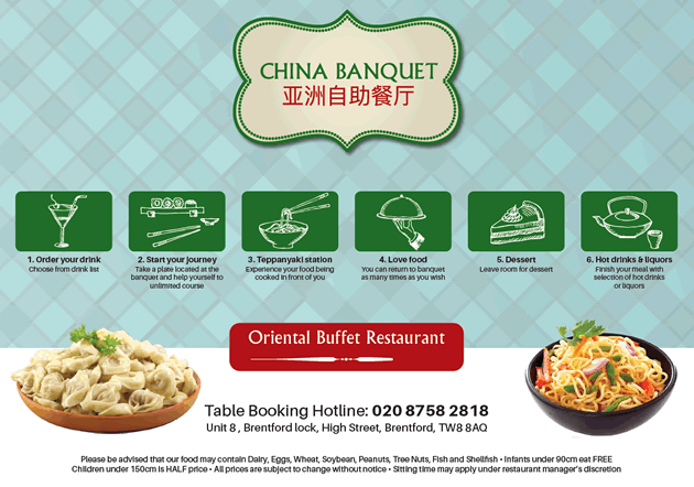 Owner Tony Liang, an experienced restauranteur would like to welcome Brentford residents to his grand opening on Tuesday 8th October. And for those who can't wait that long, they can bag a bargain on Monday 7th October at the soft opening. For one night only, food will be half price.