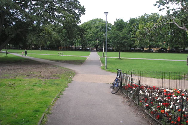 He was using the footpath across the green which is shared between cyclists and pedestrians.