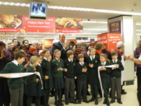 Children from St Mary's RC Primary School help staff reopen the store