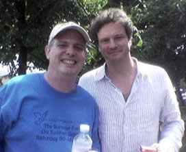 Greg Larsen with Colin Firth who brought his children along to enjoy the fair