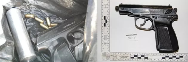 On 26 August 2016 they were observing Arnas Laugalis meeting Matthew Noori in Clarendon Road in Ealing. Laugalis got into a car with Noori and the driver of the vehicle who was later identified as Ameer Al-Sekafi. A few minutes later Laugalis got out of the car carrying a black plastic bag. Later that afternoon, officers witnessed Laugalis pass the same black bag to Jonathan Gomez in Borehamwood which he place in the boot of his car. Both men left the location separately, at which point they were detained by police. On searching the plastic bag, officers discovered it contained a firearm, ammunition and a silencer. Both were arrested and Laugalis was also found to be in possession of Class A drugs, namely cocaine and MDMA.
