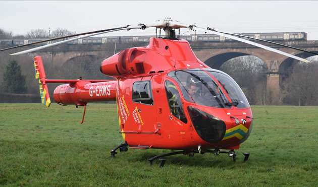 Air ambulance lands nearby.