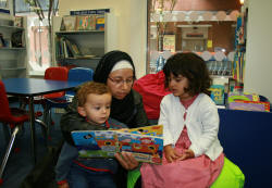 The bookshelves now swirl rather elegantly around the floor rather than the old rigid lay out of old. The children's area is still up at the same end and was already being well used.
