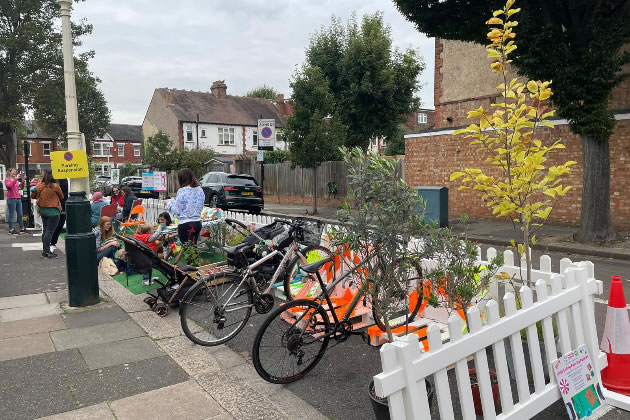 Three parking spaces outside Little Ealing Primary School were converted into a parklet this Wednesday (21 September) as part of a campaign for safer streets.